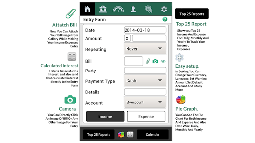 Stay informed with top 25 income and expense lists on a daily, monthly, and yearly basis.